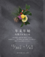 誠に勝手ながら、下記の期間は年末年始休業とさせて頂きます。